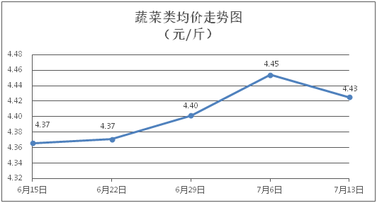 據(jù)本市21家農(nóng)貿(mào)市場(chǎng)監(jiān)測(cè)數(shù)據(jù)顯示,上周(7月7日至7月13日)市場(chǎng)上各類“菜籃子”商品供應(yīng)充足,所監(jiān)測(cè)的7大類“菜籃子”商品價(jià)格環(huán)比總體表現(xiàn)為1漲5跌1平。其中:糧油類商品價(jià)格基本平穩(wěn),肉禽蛋類、蔬果類商品價(jià)格總體略降,水產(chǎn)類商品價(jià)格總體微漲。