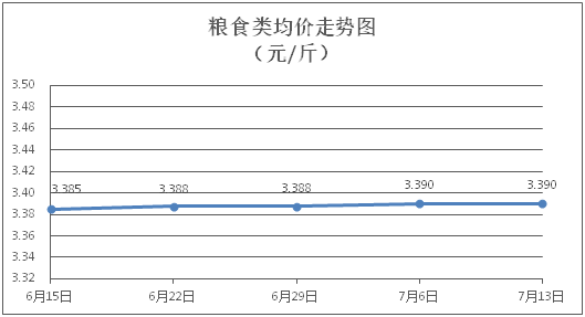 糧食類商品價(jià)格保持穩(wěn)定。所監(jiān)測(cè)的4種糧食類商品價(jià)格均持平,綜合零售均價(jià)為每斤3.390元。其中:珍珠米、面粉零售均價(jià)分別為每斤3.10元、3.40元,環(huán)比均持平。