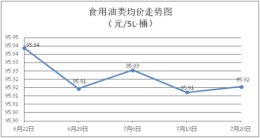 食用油類商品價(jià)格基本平穩(wěn)。所監(jiān)測的9種食用油(5L裝)商品價(jià)格波動(dòng)情況為1漲1跌7平,綜合零售均價(jià)為每桶95.92元,環(huán)比上漲0.003%。其中:金龍魚花生油、玉米油零售均價(jià)為每桶102.83元、76.12元,環(huán)比分別持平、上漲0.08%。