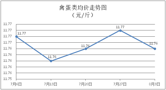 禽蛋類(lèi)商品價(jià)格小幅波動(dòng)。所監(jiān)測(cè)的5種禽蛋類(lèi)商品價(jià)格波動(dòng)情況為2漲1跌2平,綜合零售均價(jià)為每斤11.76元,環(huán)比下降0.05%。其中:白條雞、白條鴨零售均價(jià)分別為每斤20.66元、15.42元,環(huán)比分別下降0.24%、上漲0.06%;雞蛋、鴨蛋零售均價(jià)分別為每斤6.53元、7.07元,環(huán)比分別上漲0.15%、持平。