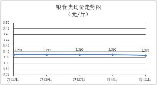 糧食類商品價格基本平穩(wěn)。所監(jiān)測的4種糧食類商品價格波動情況為1跌3平,綜合零售均價為每斤3.388元,環(huán)比下降0.07%。其中:珍珠米、面粉零售均價分別為每斤3.10元、3.39元,環(huán)比分別持平、下降0.29%。
