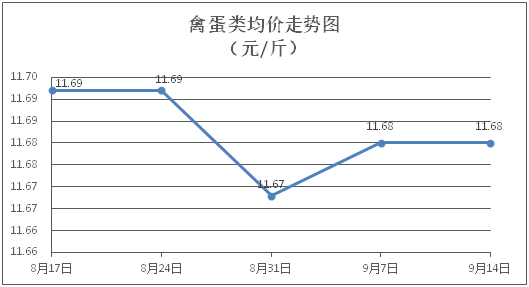 禽蛋類商品價格微幅盤整。所監(jiān)測的5種禽蛋類商品價格波動情況為2漲1跌2平,綜合零售均價為每斤11.68元,環(huán)比持平。其中:白條雞、白條鴨零售均價分別為每斤20.81元、15.14元,環(huán)比分別上漲0.10%、下降0.20%;雞蛋、鴨蛋零售均價分別為每斤6.35元、7.06元,環(huán)比分別上漲0.16%、持平。