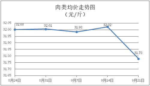肉類商品價(jià)格小幅下降。所監(jiān)測的8種肉類商品價(jià)格波動(dòng)情況為2漲5跌1平,綜合零售均價(jià)為每斤31.78元,環(huán)比下降0.76%。其中:排骨、精瘦肉、牛肉、帶骨羊肉零售均價(jià)分別為每斤30.25元、18.99元、46.41元、40.08元,環(huán)比分別下降0.10%、下降0.11%、上漲0.11%、下降4.55%。