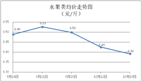 水果類商品價格升降互現(xiàn)。所監(jiān)測的6種水果商品價格波動情況為2漲3跌1平,綜合零售均價為每斤6.39元,環(huán)比下降0.52%。其中橙子、香蕉、西瓜零售均價分別為每斤7.41元、2.83元、3.17元,環(huán)比分別下降3.14%、下降1.74%、上漲2.59%。