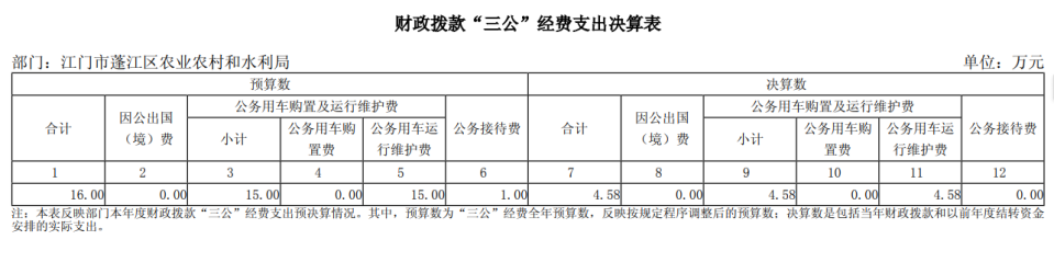 2024年江門市蓬江區(qū)農(nóng)業(yè)農(nóng)村和水利局部門決算“三公”經(jīng)費(fèi)公開