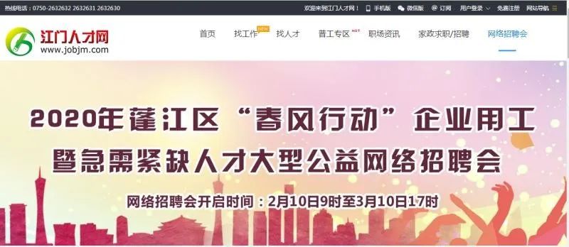 2月份,該局上線2020年蓬江區(qū)“春風(fēng)行動”企業(yè)用工暨急需緊缺人才大型公益網(wǎng)絡(luò)招聘會,網(wǎng)站累計(jì)注冊企業(yè)428家,發(fā)布職位信息3048個,招聘人數(shù)8987人,已登記的求職者3205人,投遞簡歷8201人次,已面試2236人次,成功入職1035人。