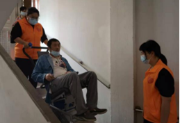 “婆婆,您只需要帶上身份證跟我們一起過去就可以了,我們有專業(yè)的樓梯機(jī)把你送下樓,直接送到接種點(diǎn)的?!惫ぷ魅藛T耐心地對未打新冠疫苗的長者進(jìn)行開導(dǎo),消除他們接種疫苗的疑慮。為積極響應(yīng)提高老年人新冠疫苗接種率的號召,建立堅(jiān)強(qiáng)免疫屏障,今年3月17-20日,朗頤“南粵家政”基層服務(wù)示范站工作人員前往白沙街道側(cè)賢社區(qū)配合開展防疫志愿服務(wù),為有需要打疫苗而又行動(dòng)不便的長者提供爬樓梯機(jī)服務(wù)和陪護(hù)服務(wù)。