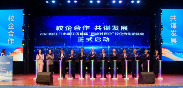 2023年3月蓬江區(qū)首屆“百校對百企”校企合作洽談會成功舉辦,來自國內(nèi)100所院校代表和蓬江區(qū)166家知名企業(yè)代表參加,31家次院校和企業(yè)簽訂校企合作意向書。