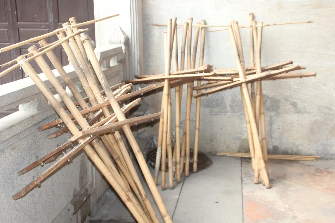 荷塘篁灣,相傳早在宋代已有舞龍習(xí)俗。當(dāng)時龍的制作非常簡單,主要是作桿草、竹子等材料制作。制作工藝精巧,龍體用竹木扎成,頭、身、尾由四條粗繩連接,牢固輕盈,形象神似。龍身原來是裹布的。