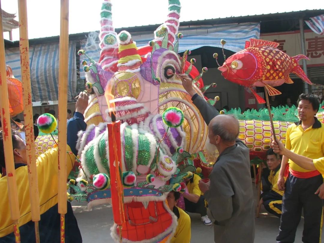 舞紗龍前,需點燃龍身內(nèi)特有的蠟燭
