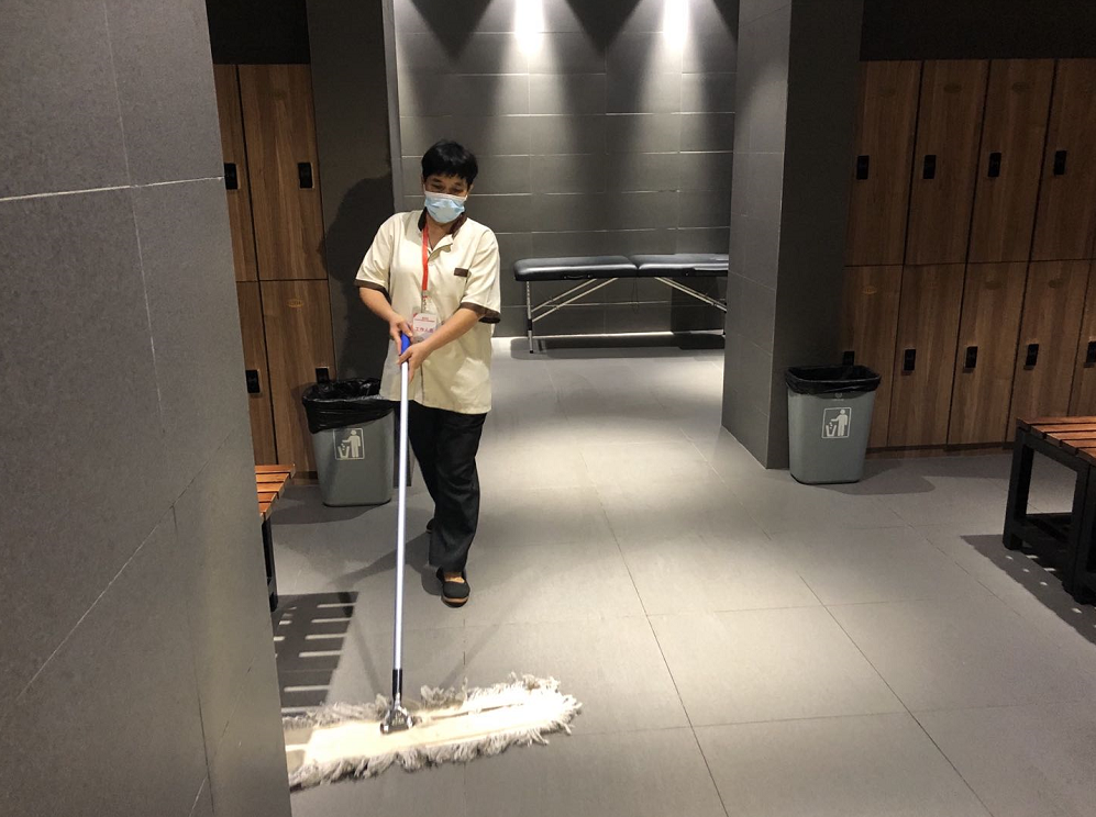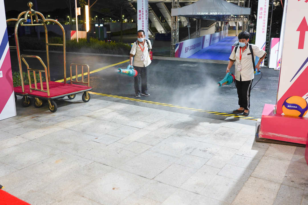 衛(wèi)生清潔人員、細致入微,每天最早來,最晚離開,對場館每個房間和角落進行細致清潔,確保賽區(qū)全方位的衛(wèi)生消毒工作。