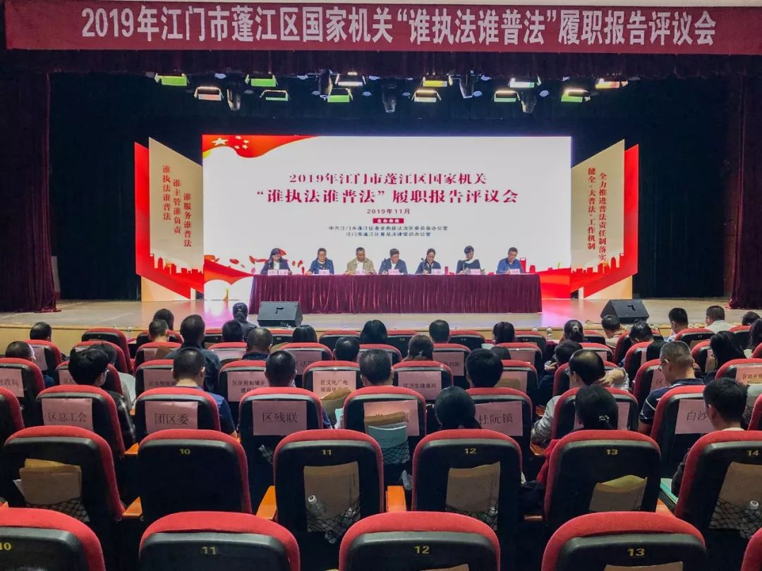 11月20日下午,蓬江區(qū)2019年國(guó)家機(jī)關(guān)“誰執(zhí)法誰普法”履職報(bào)告評(píng)議會(huì)在市工人文化宮舉行。市司法局黨組成員、副局長(zhǎng)陳勇,蓬江區(qū)委副書記、區(qū)委政法委書記林偉勤,區(qū)領(lǐng)導(dǎo)梁鳳瓊、張長(zhǎng)齊、李沃健等參加會(huì)議。