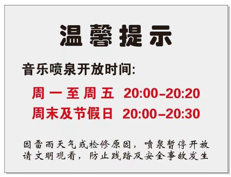注意:園山湖公園音樂噴泉于(6月28日)恢復(fù)噴泉工作,