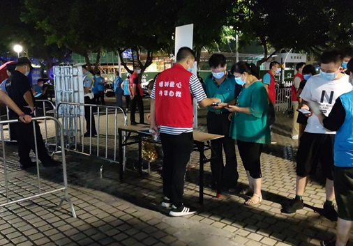 疫情就是命令,旗幟彰顯擔(dān)當(dāng)。區(qū)科工商務(wù)局組建了36名人員組成防疫先鋒隊(duì),從6月7日開(kāi)始趕赴至社區(qū),分兩批次以日夜交替輪換班的方式,積極投身到防疫志愿服務(wù)工作中,協(xié)助社區(qū)開(kāi)展全員核酸檢測(cè)工作,耐心細(xì)致做好秩序維護(hù)、信息填報(bào)引導(dǎo)、信息咨詢、測(cè)量進(jìn)出人員體溫、特殊群體幫扶等服務(wù)。黨員志愿者們從早上到下午,從夜晚到凌晨,爭(zhēng)分奪秒,連水都顧不上喝一口,頂著高溫,汗水濕透衣衫,仍然耐心地指引群眾邊排隊(duì)邊掃描二維碼填報(bào)核酸檢測(cè)信息,并維持現(xiàn)場(chǎng)秩序,連晚餐都無(wú)法顧及。黨員李丹表示:“只要祖國(guó)需要,只要群眾需要,作為黨員,我們肯定要第一時(shí)間站出來(lái),奮勇迎戰(zhàn),沖鋒在前?!?/span>