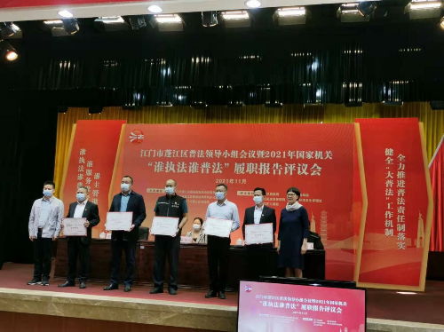 區(qū)民政局獲評(píng)“2021年蓬江區(qū)國(guó)家機(jī)關(guān)‘誰(shuí)執(zhí)法誰(shuí)普法’履職評(píng)議”優(yōu)秀等級(jí)及優(yōu)秀宣傳獎(jiǎng)