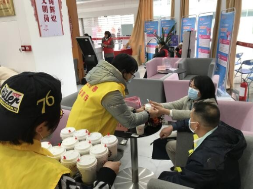 此外,在2月22日這一特別的日子里,蓬江區(qū)民政局婚姻登記處迎來(lái)了100多對(duì)新人,為給新人和志愿者送去一份甜蜜的溫暖,蓬江區(qū)慈善“益”空間特意為在排隊(duì)等候的新人和志愿者送去熱檸檬水。新人張先生表示“喝了這杯熱飲,全身都熱騰騰的,感恩在這人生重要的日子里收到一份‘善’的祝福和溫暖?!?/span>