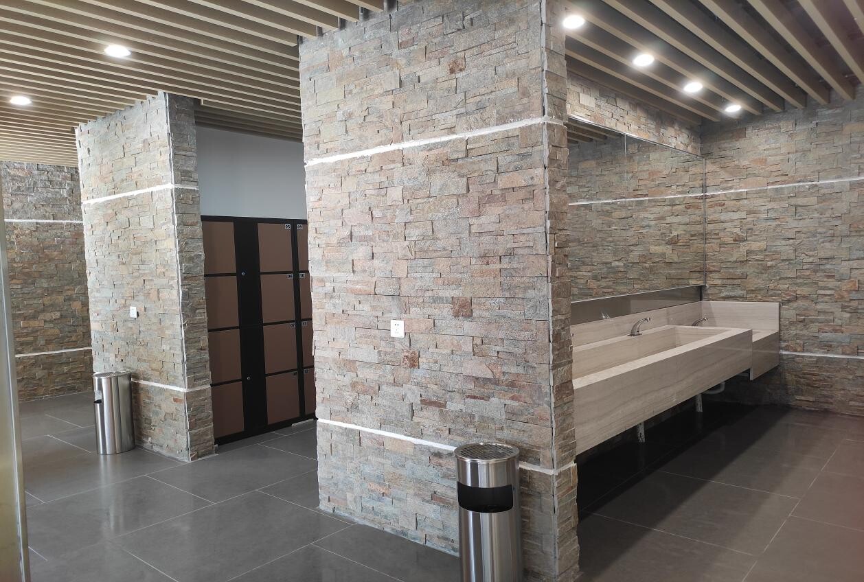 本次升級改造的公廁位于群星公園停車場,毗鄰南門入口。改造前,日常如廁人流量較大。原有建筑陳舊僅有廁位3個,墻體殘舊滲水、門窗破損、設(shè)施陳舊、缺少無障礙設(shè)施,日常使用中空氣十分渾濁難聞。改造后,在景觀上,建筑外墻采用符合生態(tài)自然風(fēng)格文化石,在外觀上體現(xiàn)美觀大方;在功能上,設(shè)有男女衛(wèi)生間廁格20個,多個廁格方便更多的市民使用。