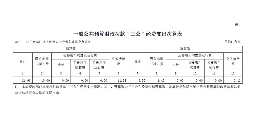 2018年江門市蓬江區(qū)人民代表大會常務委員會辦公室部門決算公開