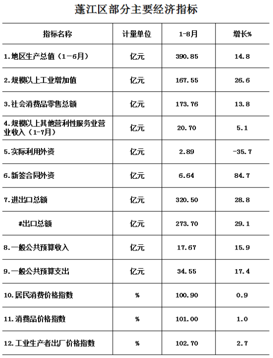 2021年1-8月蓬江區(qū)經(jīng)濟(jì)運行簡況