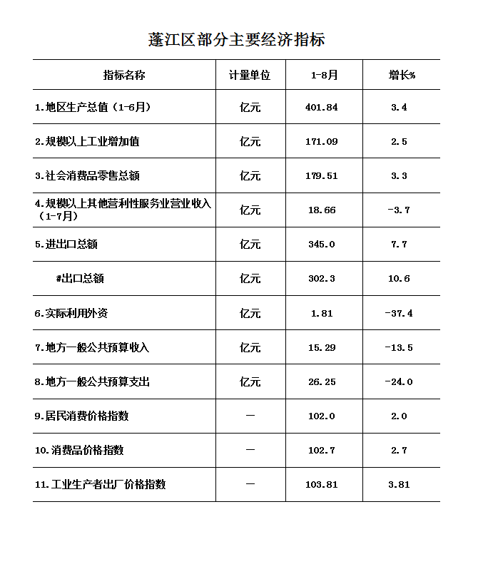 2022年1-8月蓬江區(qū)經(jīng)濟(jì)運(yùn)行簡況