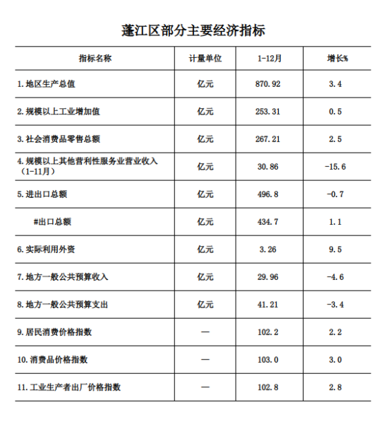 2022年1-12月蓬江區(qū)經(jīng)濟(jì)運(yùn)行簡況