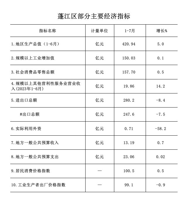 2023年1-7月蓬江區(qū)經(jīng)濟(jì)運(yùn)行簡(jiǎn)況