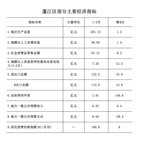 2024年1-3月蓬江區(qū)經(jīng)濟(jì)運(yùn)行簡(jiǎn)況
