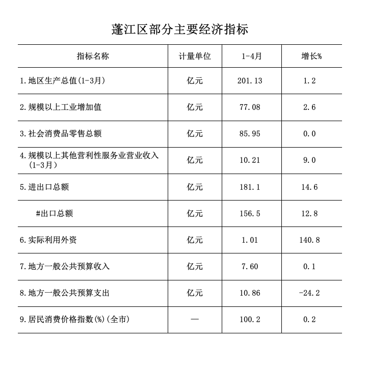 2024年1-4月蓬江區(qū)經(jīng)濟運行簡況