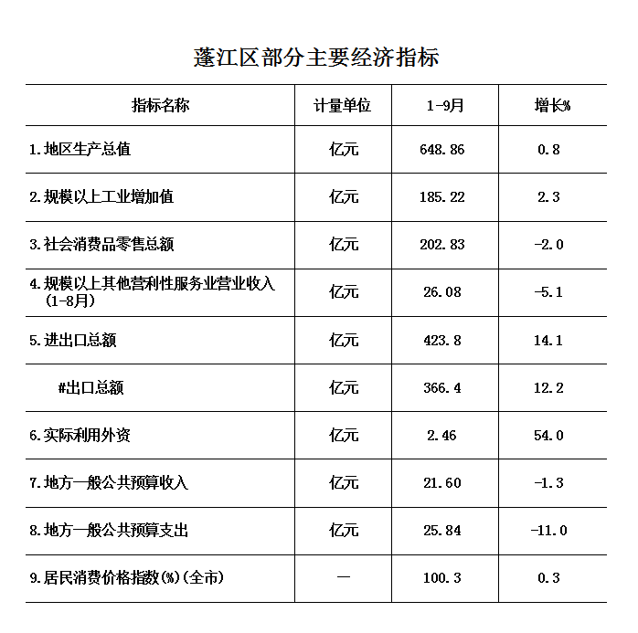 2024年1-9月蓬江區(qū)經(jīng)濟(jì)運(yùn)行簡(jiǎn)況
