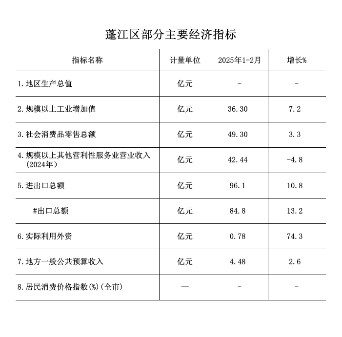 2025年1-2月蓬江區(qū)經(jīng)濟(jì)運(yùn)行簡(jiǎn)況