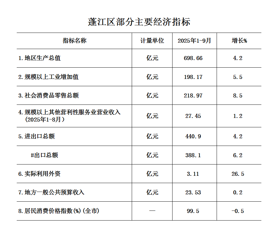 2025年1-9月蓬江區(qū)經(jīng)濟(jì)運(yùn)行簡況