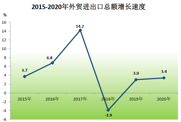 全年外貿(mào)進(jìn)出口總額396.9億元,比上年增長3.4%。其中,進(jìn)口60.1億元,增長4.2%;出口總額336.8億元,增長3.3%。新簽合同外資2.28億美元,下降13.2%;實(shí)際利用外資0.91億美元,下降44%。
