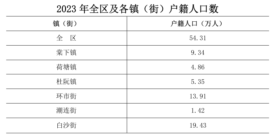 2023年末,全區(qū)常住人口87.04萬(wàn)人,比上年末增加0.21萬(wàn)人。年末公安戶籍總?cè)丝?/span>54.31萬(wàn)人,其中:男性人口26.31萬(wàn)人;女性人口28萬(wàn)人。全年出生人口4375人,出生率8.05‰;死亡人口3609人,死亡率6.65‰;自然增長(zhǎng)人口766人,自然增長(zhǎng)率1.41‰。
