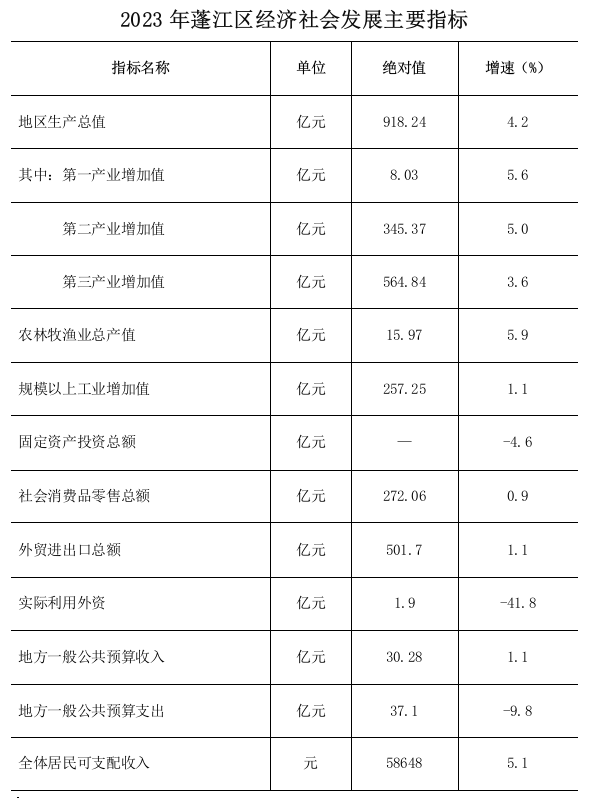 2023年江門市蓬江區(qū)國(guó)民經(jīng)濟(jì)和社會(huì)發(fā)展統(tǒng)計(jì)公報(bào)
