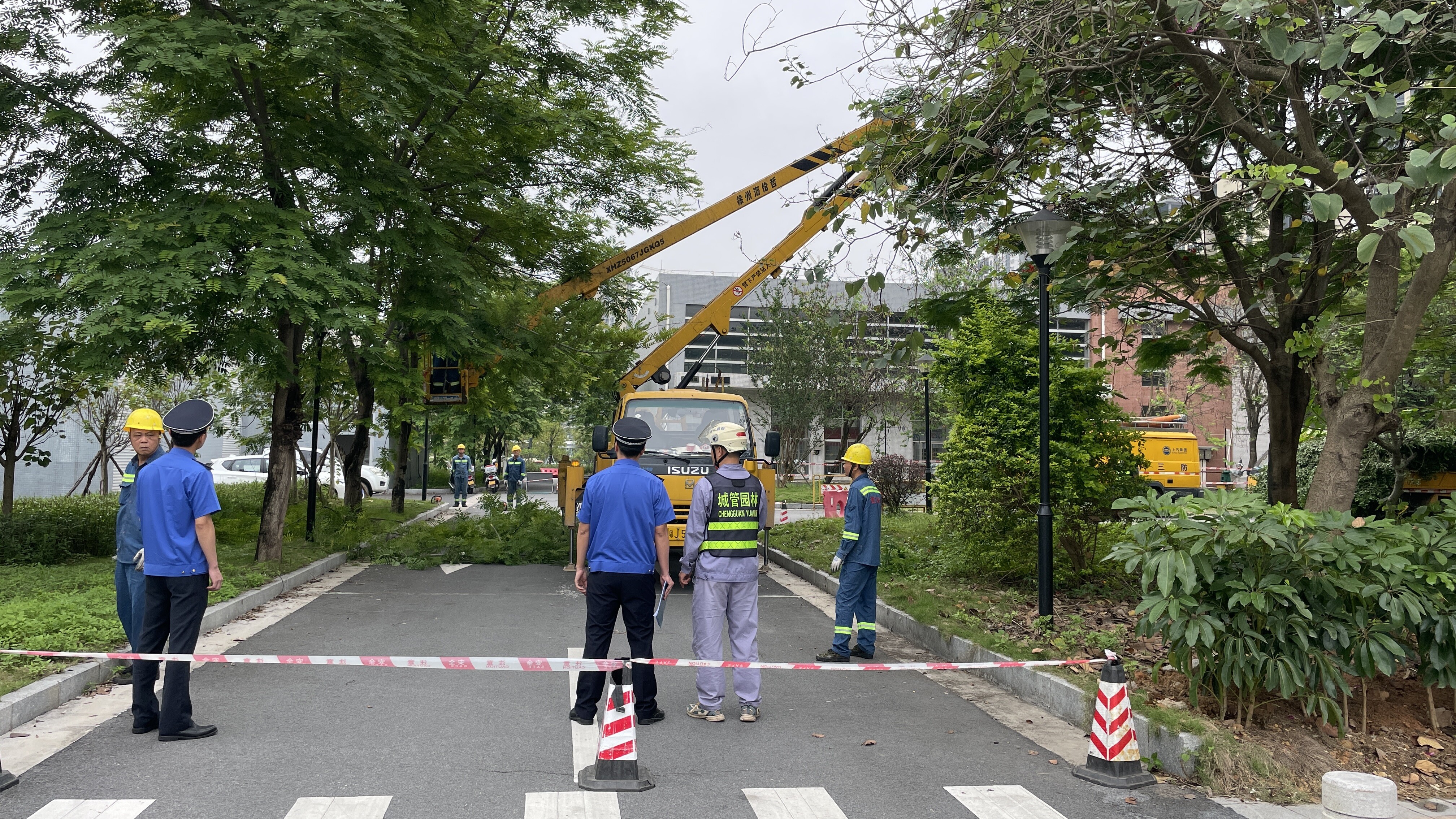 搶險(xiǎn)隊(duì)伍模擬對(duì)倒伏樹木進(jìn)行處理