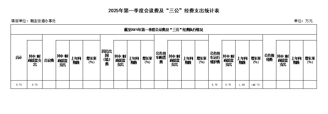 潮連街2025年第一季度會議費及“三公”經(jīng)費支出統(tǒng)計表