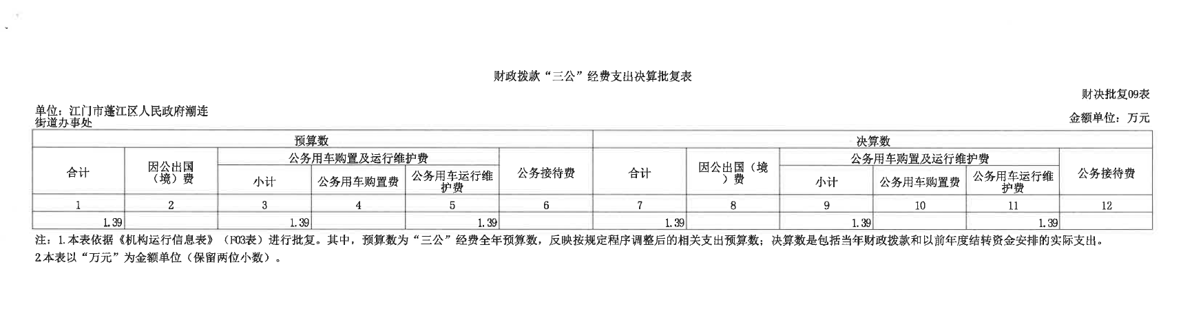潮連街道辦事處2024年財政撥款“三公”經(jīng)費支出決算批復(fù)表