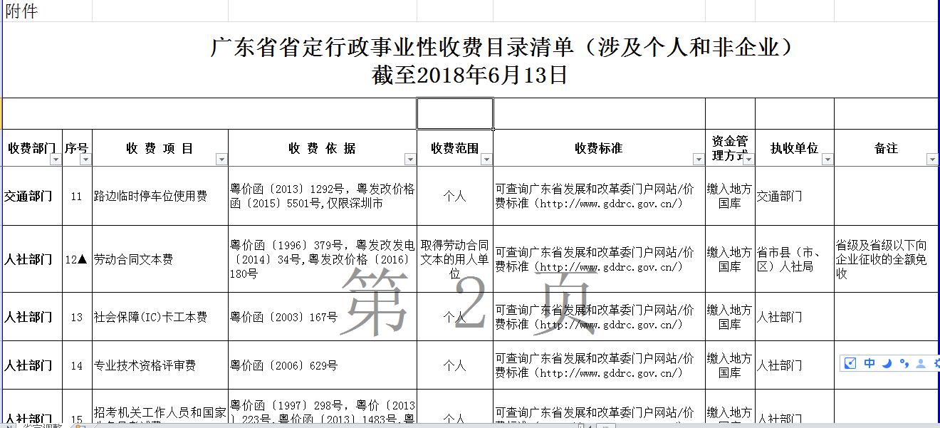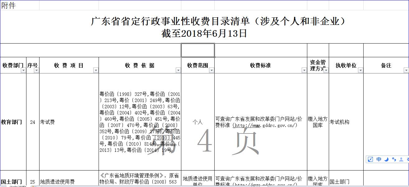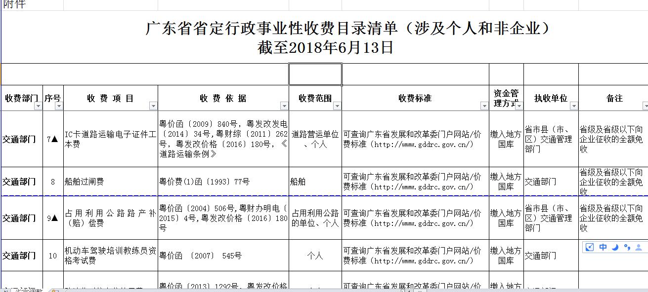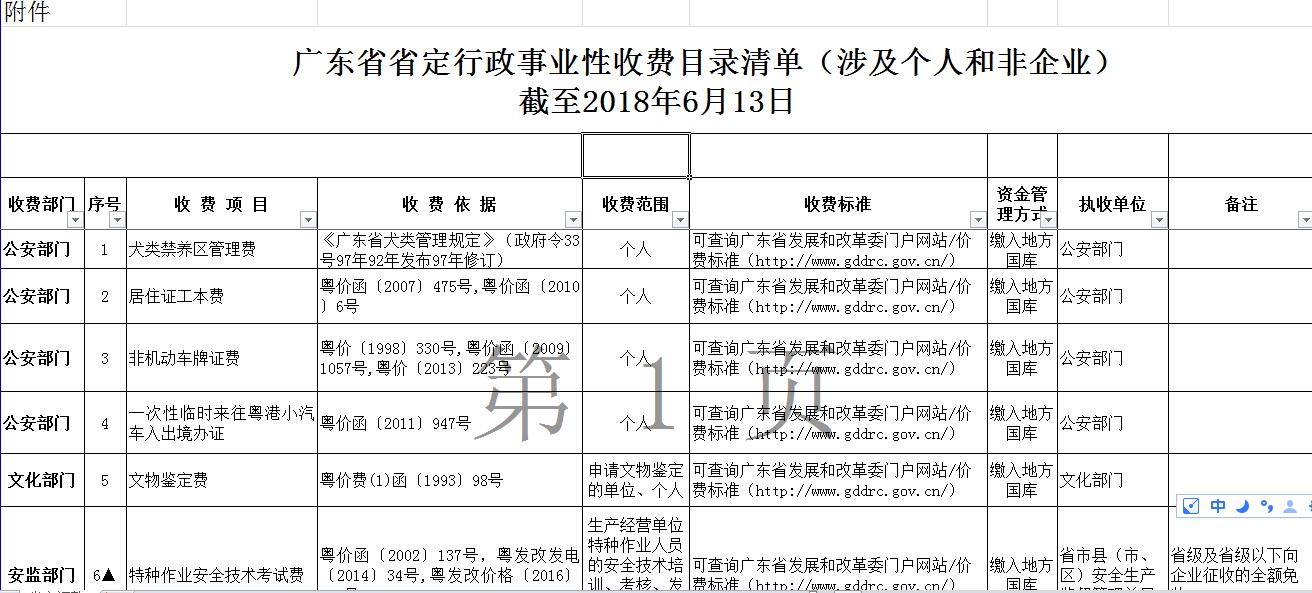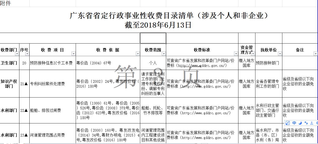 廣東省省定行政事業(yè)性收費目錄清單(涉及個人和非企業(yè))