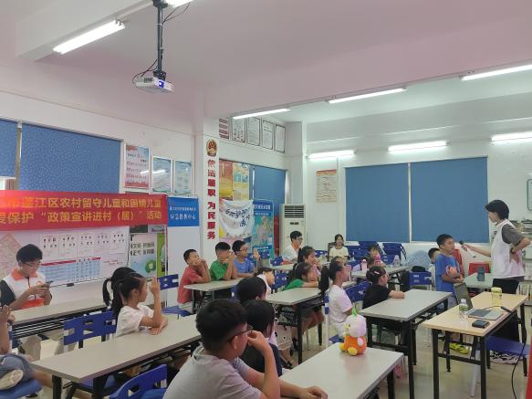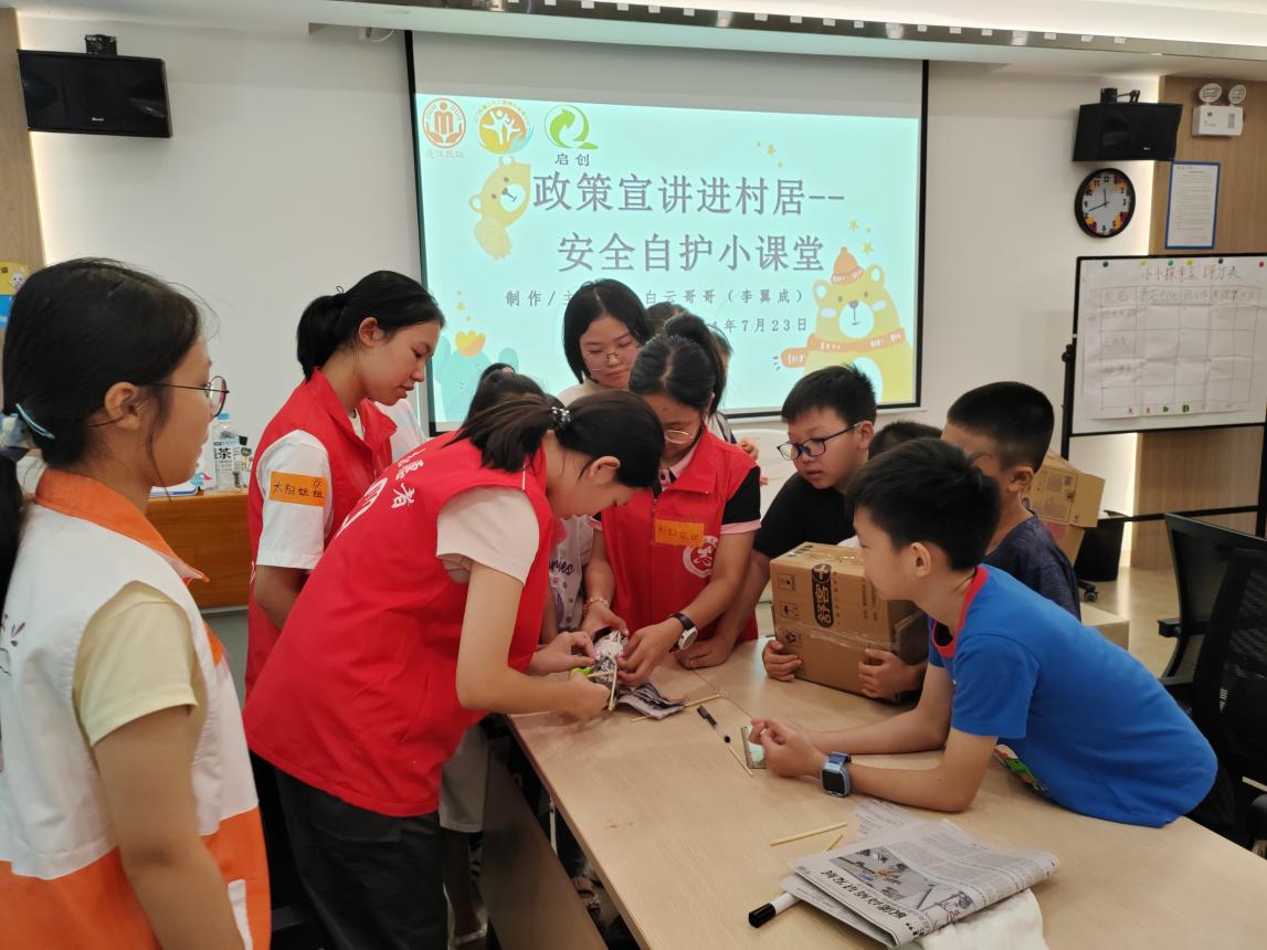 在社工的組織與帶領(lǐng)下,志愿者團隊各自設(shè)計出4個安全主題的夏令營課程。其中,在防溺水主題中,志愿者通過知識短講、情景模擬題以及快問快答等趣味方式,向兒童講解如何防溺水、如何自救,引導(dǎo)兒童做到防溺“六不要”,讓兒童在輕松愉快的氛圍中學習知識。