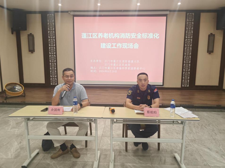 為全面推進(jìn)養(yǎng)老機(jī)構(gòu)消防安全標(biāo)準(zhǔn)化建設(shè),提高機(jī)構(gòu)火災(zāi)防范及應(yīng)急處理能力,切實(shí)保障人民群眾生命財(cái)產(chǎn)安全,8月29日下午,蓬江區(qū)民政局聯(lián)合蓬江區(qū)消防救援大隊(duì)在蓬江區(qū)幸福四季家園養(yǎng)老中心組織召開(kāi)蓬江區(qū)養(yǎng)老機(jī)構(gòu)消防安全標(biāo)準(zhǔn)化建設(shè)工作現(xiàn)場(chǎng)會(huì)。區(qū)民政局副局長(zhǎng)余國(guó)輝、區(qū)消防救援大隊(duì)工程師蔡珀珀及轄區(qū)各養(yǎng)老機(jī)構(gòu)安全管理員等30人參加了本次培訓(xùn)。