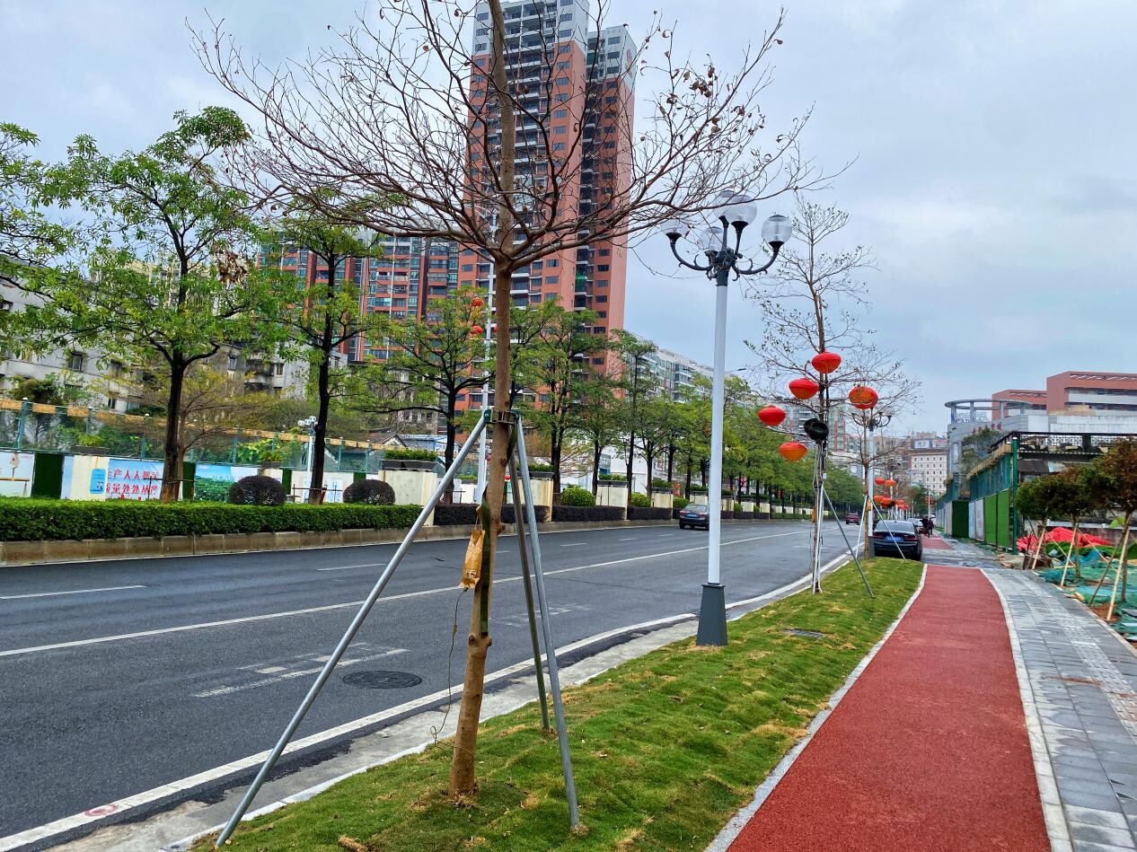 為積極響應(yīng)群眾訴求,推進(jìn)城市建設(shè)品質(zhì)提升,在白沙街道和區(qū)相關(guān)部門的支持下,蓬江區(qū)城市管理和綜合執(zhí)法局于12月底啟動(dòng)白沙大道東農(nóng)商銀行至世紀(jì)城段人行道復(fù)建工作。此次人行道復(fù)建長(zhǎng)度約160米,配套建設(shè)人行道、非機(jī)動(dòng)車道、綠化帶、庭院燈,并對(duì)沿線兩側(cè)綠化樹(shù)木的樹(shù)桿上安裝LED霓虹燈帶燈飾和異型花燈燈籠。