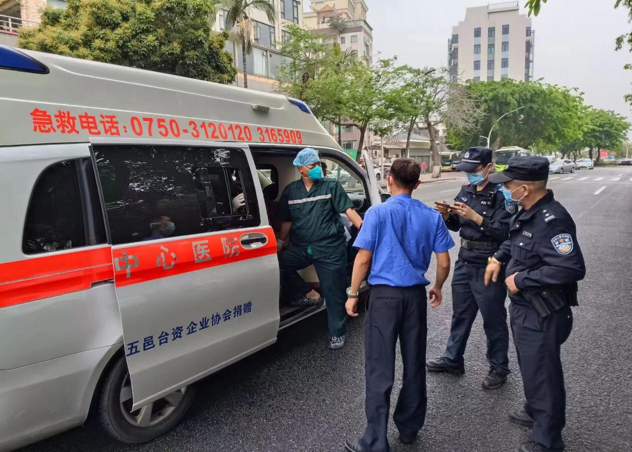 3月18日上午10時(shí)30分,徐龍友、陳毅勇兩名隊(duì)員巡查至蓬江區(qū)海傍街時(shí),發(fā)現(xiàn)一男士駕駛摩托車發(fā)生交通事故,受傷倒地,意識(shí)模糊。
