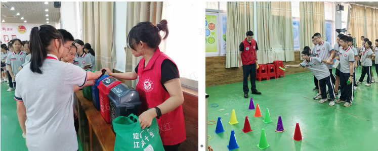 科普環(huán)節(jié)結(jié)束后,活動(dòng)現(xiàn)場(chǎng)還設(shè)置了“垃圾分一分”“分類娛樂(lè)套圈”等趣味小游戲,“舊報(bào)紙可不可以賣了換錢呢?可以賣了換錢的就是可回收物,要投放到藍(lán)色垃圾桶。”在“垃圾分一分”游戲中,工作人員耐心地指導(dǎo)同學(xué)正確進(jìn)行垃圾分類。同學(xué)們通過(guò)參與互動(dòng)游戲有機(jī)會(huì)獲得筆筒、手帕紙、垃圾袋等小禮品,現(xiàn)場(chǎng)氣氛熱烈活躍。