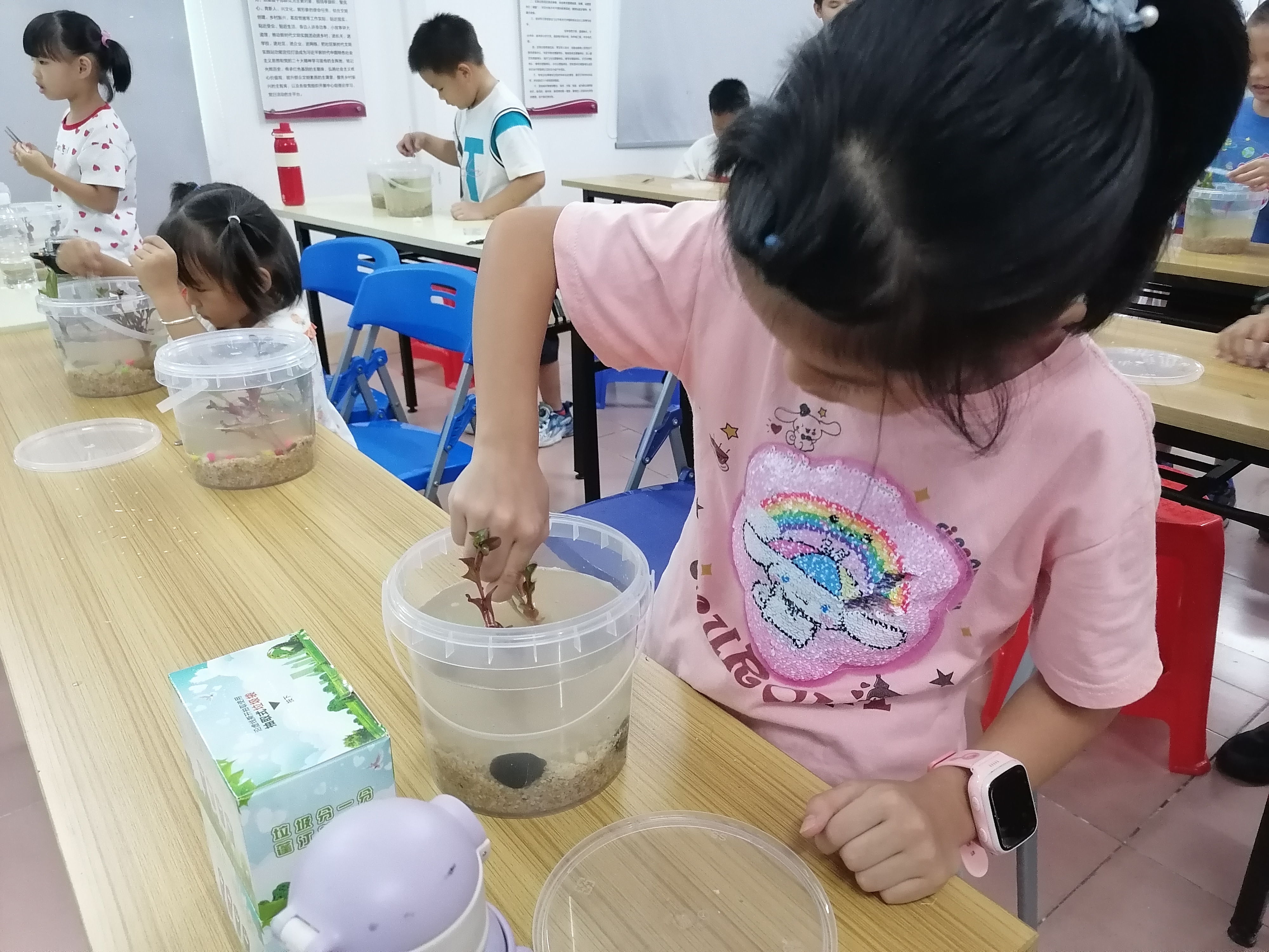 科普講座結(jié)束后,就到了令人期待已久的“迷你生態(tài)魚缸”DIY制作環(huán)節(jié)。“迷你生態(tài)魚缸”通過合理搭配魚類、水草、微生物等生物,以及適當(dāng)?shù)乃|(zhì)管理,模擬出一個(gè)穩(wěn)定的可循環(huán)自然生態(tài)系統(tǒng)。