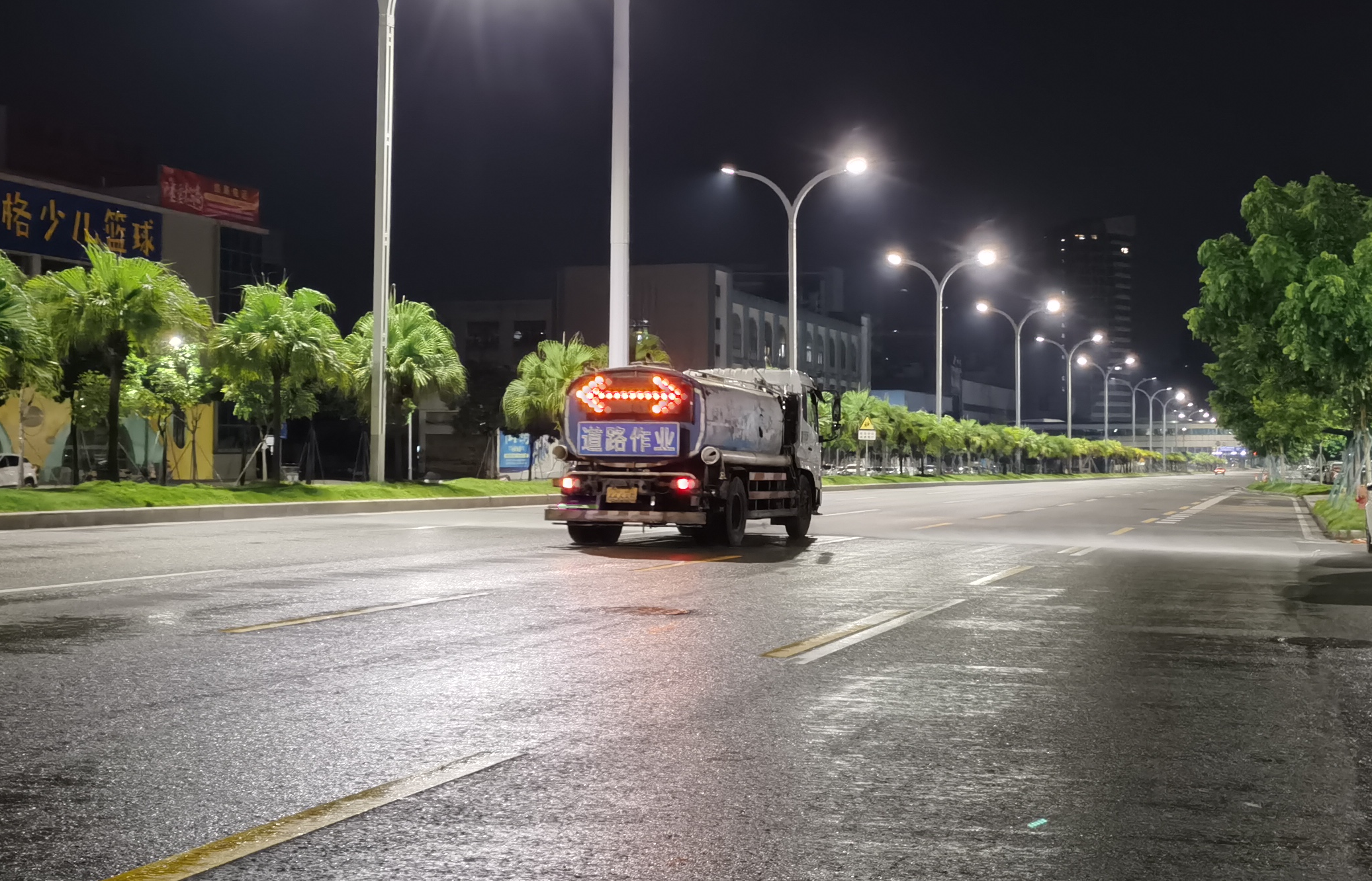 △環(huán)衛(wèi)灑水車凌晨開始作業(yè)