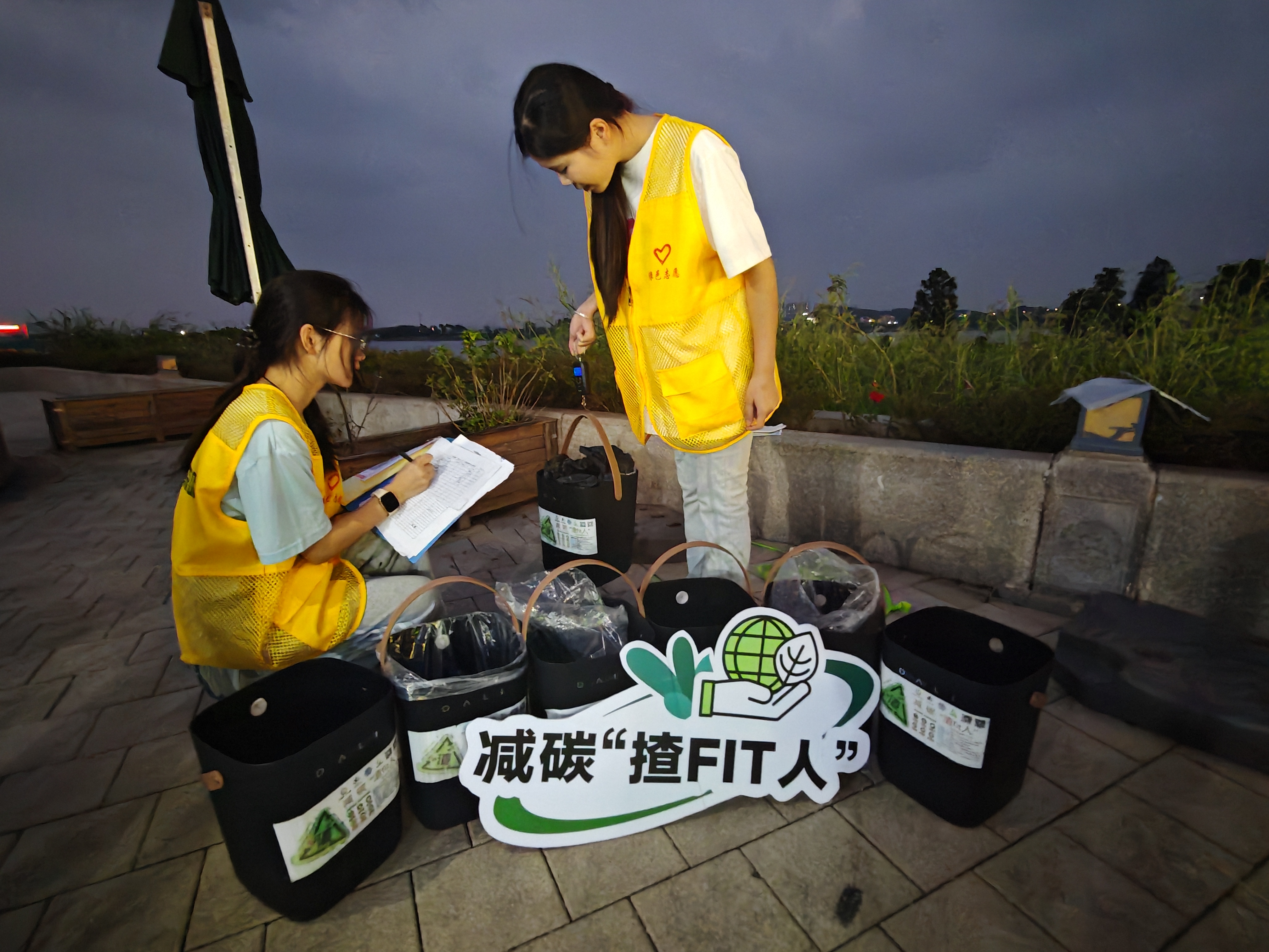 △志愿者對(duì)收集到的咖啡渣進(jìn)行稱(chēng)重統(tǒng)計(jì)