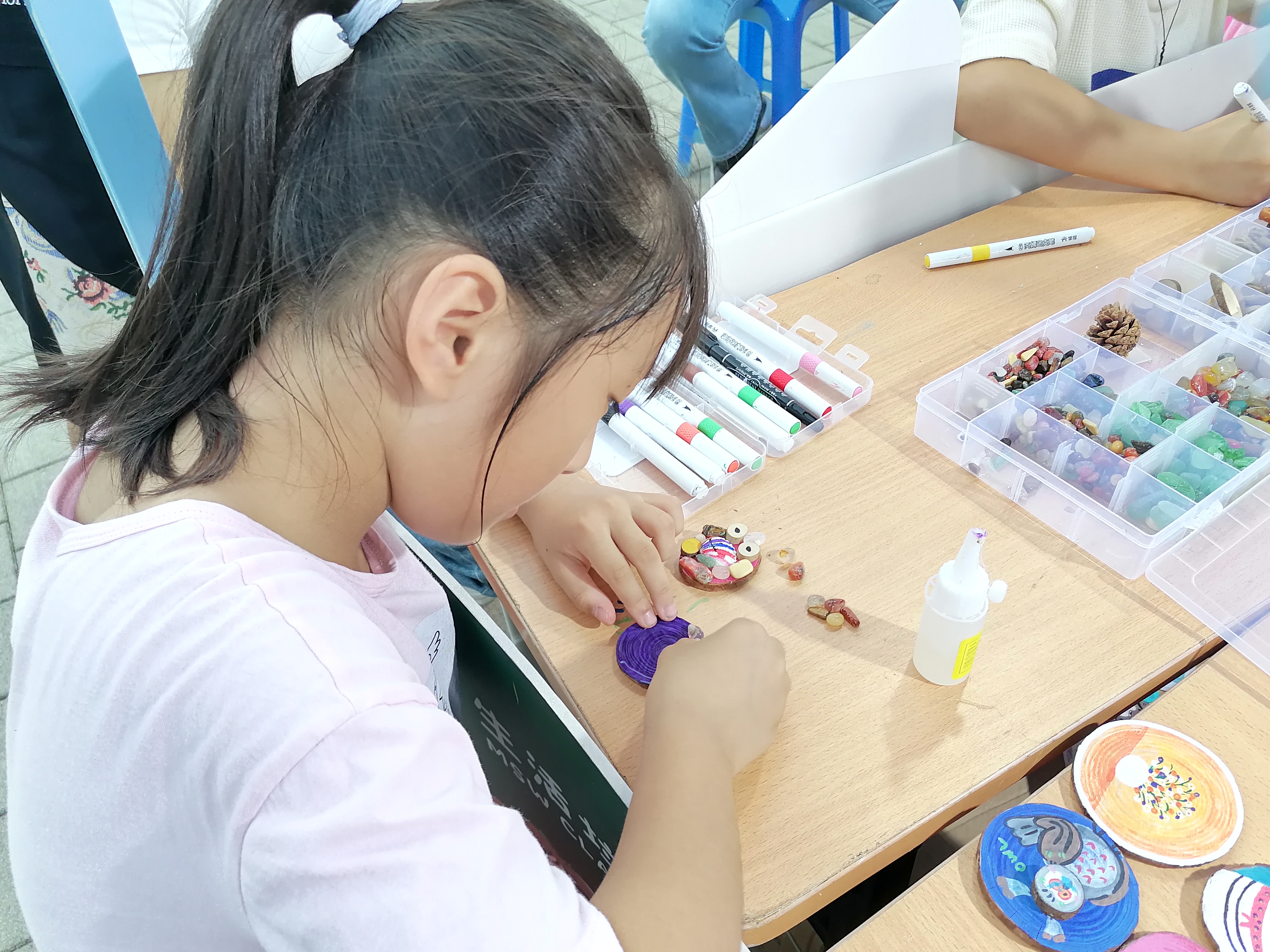 △小朋友在體驗(yàn)“環(huán)保冰箱貼”手工制作
