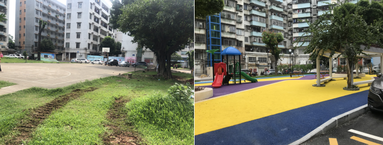 麗苑社區(qū)建成于20世紀(jì)90年代,該社區(qū)普遍存在路面積水、停車難、市政公共設(shè)施老化等“通病”。在改造過程中,蓬江區(qū)城市管理和綜合執(zhí)法局深入實(shí)地調(diào)研,除了以上問題外,還發(fā)現(xiàn)該片區(qū)部分公園存在設(shè)置破舊、長期閑置的情況。