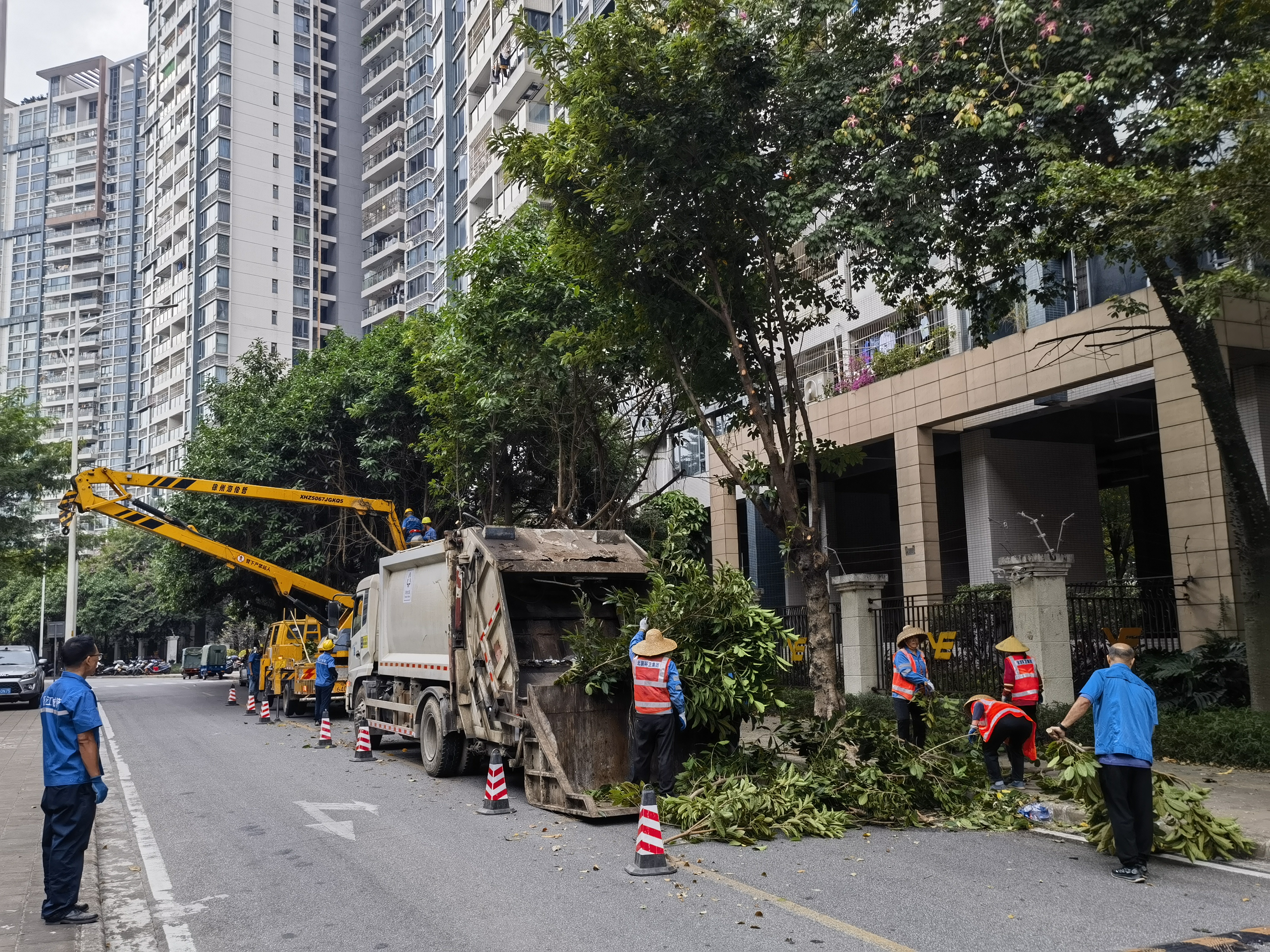 工作人員對樹木枝條進(jìn)行壓縮清運(yùn)