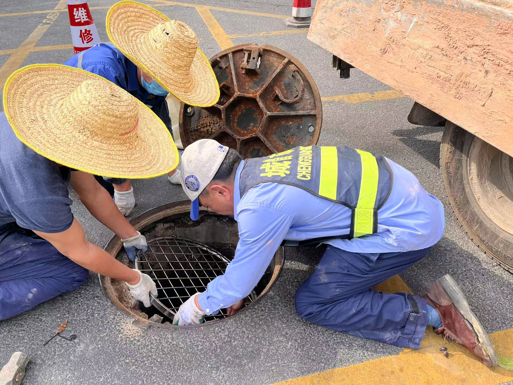 對(duì)易積水區(qū)域進(jìn)行清疏和安裝、更換窨井防墜網(wǎng)